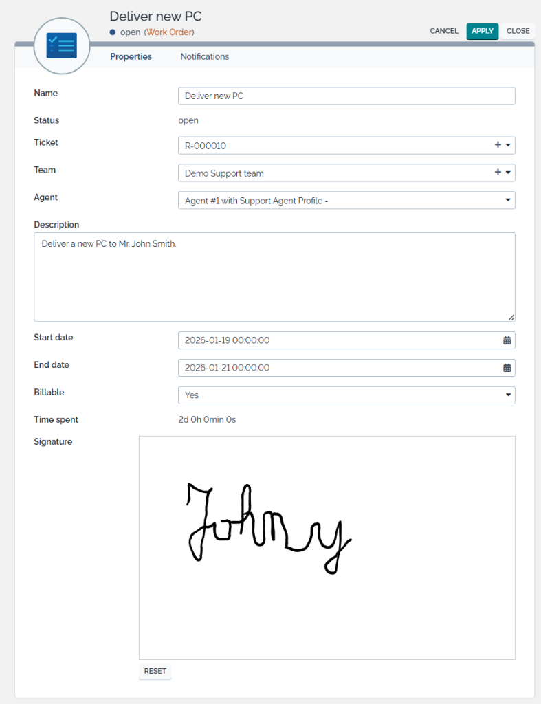 A use case could be to allow users to sign a work order.